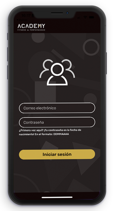 Queremos que siempre tengas una experiencia increíble con nuestros servicios. Es por eso que tenemos una aplicación móvil exclusiva para socios con una interfaz moderna e interactiva. En ACADEMY APP, podrás elegir el idioma que prefieras, visitar tu perfil, ingresar tu plan de entrenamiento, tu evaluación física, agendar clases y mucho más.